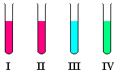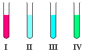 Four colorless liquids, I, II, III, and IV, could be water, a 1 M solution of an acid, a solution of a buffer, or a 1 M solution of a base. 25 mL of each unknown was added to a different test tube.
