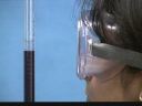 In a titration you measure the quantity of one reactant that is required to consume all of another reactant. To accomplish this, you measure the volume of liquid released from the buret during the procedure. The initial level of the liquid in the buret is observed and recorded. The flask containing the sample to be titrated is placed under the buret. When the purple titrant enters the flask it reacts with the colorless sample. The products of the reaction are colorless. The titrant is a purple solution. The titrant solution in the buret is added to the sample solution in the flask. At this stage, all of the added titrant has reacted within the flask. We know this because the solution in the flask has reverted back to being clear and colorless. Now we are at the end point of the titration, where enough titrant has been added from the buret to react with all of the reactant in the flask, and the solution's color has changed slightly, due to a slight excess of titrant. At this point we can take our final reading.(27)