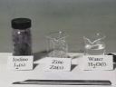 When powdered zinc and solid iodine are mixed, no reaction is observed. When water is added to the mixture, the exothermic reaction raises the temperature enough to vaporize iodine.(37)
