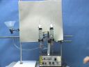 Two cylinders containing a sodium sulfate solution are connected with tubing. Each has a platinum electrode connected to a power supply. Bromothymol Blue indicator is in the sodium sulfate solution. The top vial shows the indicator color in the acid, the middle in neutral solution, and the bottom in base. When electricity passes through the system, oxidation occurs at one electrode and reduction at the other. Gas is formed at each electrode, and the acidity increases at one electrode and decreases at the other.(32)