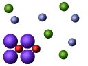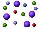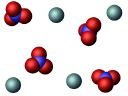 Slide 1: This represents a potassium nitrate solution. The blue-green balls are potassium ions. Nitrate ions are represented by a blue ball (nitrogen) surrounded by three red balls (oxygen).