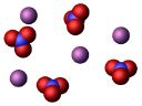 Slide 1: This represents a silver nitrate solution. The violet balls are silver ions. Nitrate ions are represented by a blue ball (nitrogen) surrounded by three red balls (oxygen).