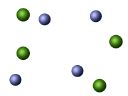 Slide 2: This represents a sodium chloride solution. The blue-grey balls are sodium ions and the green balls are chloride ions