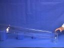 Methane gas escapes from a beaker and flows up a trough to a candle flame. The flammable gas ignites, producing a beautiful blue flame.(41)