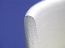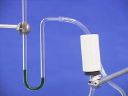The apparatus has been inverted to work with gases more dense than air. Oxygen, which is slightly more dense than air, causes a very small decrease in pressure within the cup. The pressure decreases because the effusion rate of nitrogen from the air out of the cup is greater than the effusion rate of oxygen into the cup.(32)