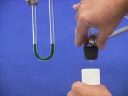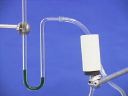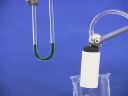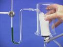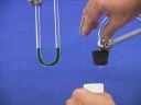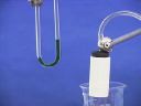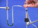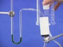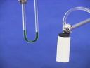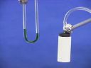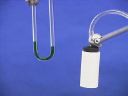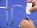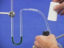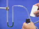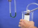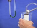 A U-tube containing a green liquid is connected with tubing to a stoppered flask. A syringe is attached to the flask and is used to change the pressure on the green liquid in the U-shaped tube. As you view the following sequences, try to determine what properties of gases affect the pressure.(32)