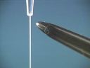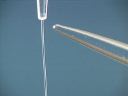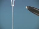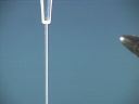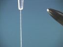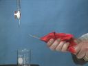 Liquid is contained in a burette and allowed to flow down into a beaker in a thin stream. When the bakelite rod is rubbed with fur and brought near the stream of liquid the stream is attracted toward the rod and deflected from its straight downward path. The same thing happens when a glass rod rubbed with silk is brought near the stream of liquid; the stream of liquid is deflected toward the rod.(42)