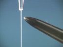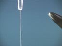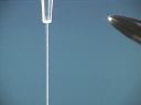 A stream of Acetone is attracted to either rod. Polar Acetone molecules stabilize the charge induced on the stream of liquid, and cause the stream to be attracted to the rod.(40)