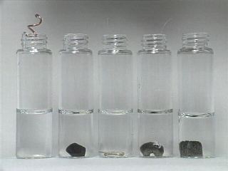 Metals in Silver Nitrate Solution, same time (First Frame) The file name of this item is S123A.JPG and is located in the directory/folder named R1ST/R0117 © 1997 Division of Chemical Education, Inc., American Chemical Society. All rights reserved.