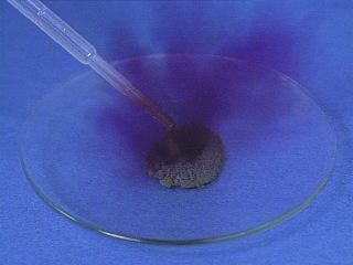 Zinc Iodine Reaction; Movie of the reaction (Frame 532) The file name of this item is S199E.JPG and is located in the directory/folder named R1ST/R0198 © 1997 Division of Chemical Education, Inc., American Chemical Society. All rights reserved.