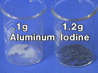 Picture of the reactants (Slide 1) 0.1 g Al 1.2 g I2 The file name of this item is S200C.JPG and is located in the directory/folder named R1ST/R0198 © 1997 Division of Chemical Education, Inc., American Chemical Society. All rights reserved.