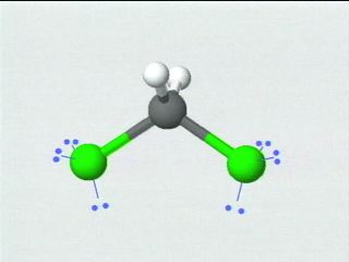 Dichloromethane; Molecule of dichloromethane (Slide 1) The file name of this item is S527C.JPG and is located in the directory/folder named R1ST/R0514 © 1997 Division of Chemical Education, Inc., American Chemical Society. All rights reserved.