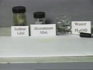 Reactions of Metals + Iodine; Aluminum (First Frame) The file name of this item is S719A.JPG and is located in the directory/folder named R1ST/R0719 © 1997 Division of Chemical Education, Inc., American Chemical Society. All rights reserved.