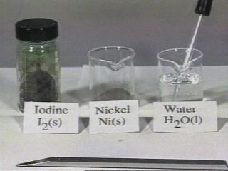 Reactions of Metals + Iodine; Nickel (First Frame) The file name of this item is S725A.JPG and is located in the directory/folder named R1ST/R0719 © 1997 Division of Chemical Education, Inc., American Chemical Society. All rights reserved.