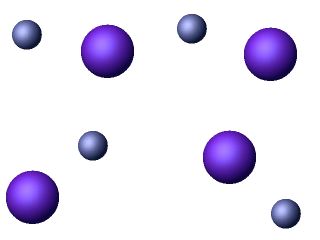 This represents a sodium iodide solution. The blue-grey balls are sodium ions and the violet balls are iodide ions