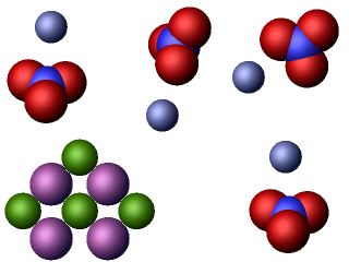 This is a representation of the mixture present after the reaction is complete. It shows silver chloride solid, sodium ions and nitrate ions.