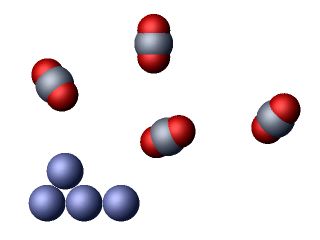 Before the reaction there are four carbon dioxide molecules and four magnesium atoms.