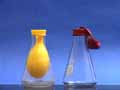 A small amount of water is placed in one of two Erlenmeyer flasks on a hot plate. After the water has boiled balloons are fitted to the tops of the flasks and the flasks are allowed to cool. After a short time the balloon on the flask containing water is drawn into the flask as the water vapor condenses to form liquid water; the balloon on the other flask remains unchanged.