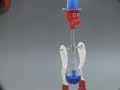 This drinking bird is available in some novelty stores. The vapor pressure differential between the head and the base causes the liquid to rise in the neck. When the liquid enters the head, it causes the bird to tip over into the water for another drink. The bird's head is covered with a material that absorbes water. The base is closed at the top and so the only way that liquid and vapor can escape is through the tube which extends almost to the bottom of the base.Effect of heat