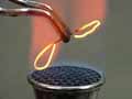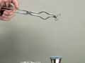A bobby pin is heated until it glows red hot and then slowly cooled. It loses its springiness and becomes very flexible. A simulation illustrates this process at the atomic level. When the bobby pin is reheated and then rapidly cooled, it becomes very brittle. A simulation illustrates this process at the atomic level. When a hardened bobby pin is slowly heated until a blue coating forms on its surface, it once again becomes springy. This process is also illustrated with an atomic-level simulation.
