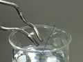 An annealed bobby pin is again heated until it glows red hot. This time, instead of being allowed to cool gradually, the red hot bobby pin is cooled quickly in cold water. This process is called hardening. The hardened bobby pin is brittle.
