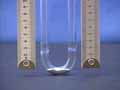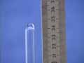 The relationship between the volume of a gas and the pressure it exerts can be studied by adding mercury to a J-tube until the height of the mercury is equal on both sides and a sample of gas is trapped. The pressure in the closed portion of the tube now equals atmospheric pressure. The cylinder of trapped air is 34 centimeters high, and its volume is proportional to its height.