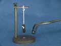 Nickel is ferromagnetic. Domains of electrons align causing the nickel sphere to be attracted to the hanging magnet. Heating the nickel sphere scrambles the alignment of the electrons, and the sample is no longer attracted to the magnet. After the nickel sphere has cooled on the brass plate to below 627 Kelvin, the electrons realign and the ferromagnetism returns.Alignment of spins below and above 627 K in the absence of a magnetic field are shown.