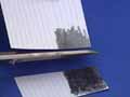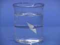 The square is placed at the interface between two liquids (hexane and water). The paper orients itself so that the nonpolar graphite faces the nonpolar hexane and the polar molecules in the uncoated paper face the polar water.labeled version: