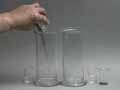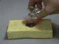 Iodine crystals are poured into a large cylinder. Like most alkenes, cyclohexene reacts only sluggishly with iodine. But when