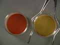 When red-orange Mercury(II) Iodide (HgI2) is heated, it undergoes a phase transition at 126oC to a pale yellow form. As the heated sample cools, it gradually returns to the original red-orange color.