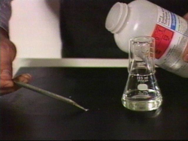Pouring a solution of sodium acetate in water.Additional still images for this movie