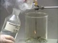 Chips of calcium carbide are placed on a watch glass inside a cylinder of chlorine. Water is slowly dripped onto the calcium carbide generating acetylene gas. The acetylene reacts rapidly with the chlorine producing clouds of carbon. When a stopper from a bottle of aqueous ammonia is brought near the flame, white fumes of ammonium chloride are produced indicating the presence of hydrogen chloride. Although acetylene continues to be generated, the reaction with chlorine ceases when all of the chlorine has been consumed.