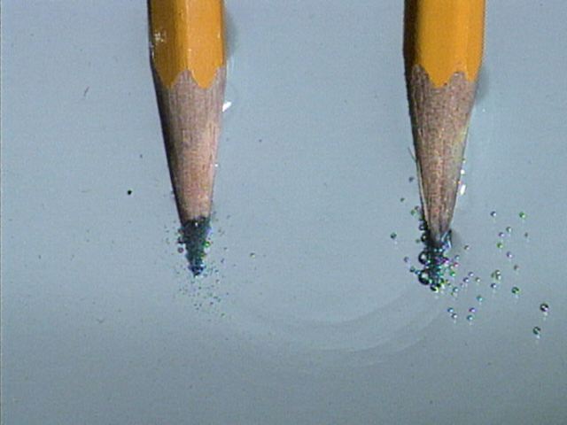 (Electrolysis of a silver nitrate solution produces oxygen at the anode and silver at the cathode.)