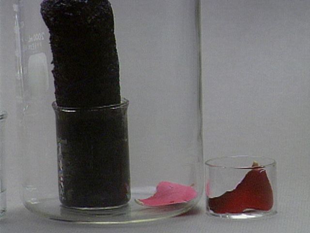 A rose petal is bleached by the sulfur dioxide.Additional still images for this movie