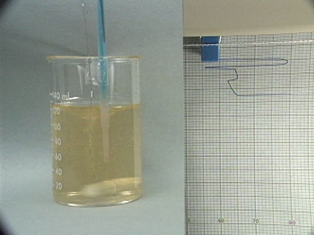 While viewing the reaction of the unstirred mixture, listen carefully for variation in the fizzing sound, which oscillates in concert with the color changes.