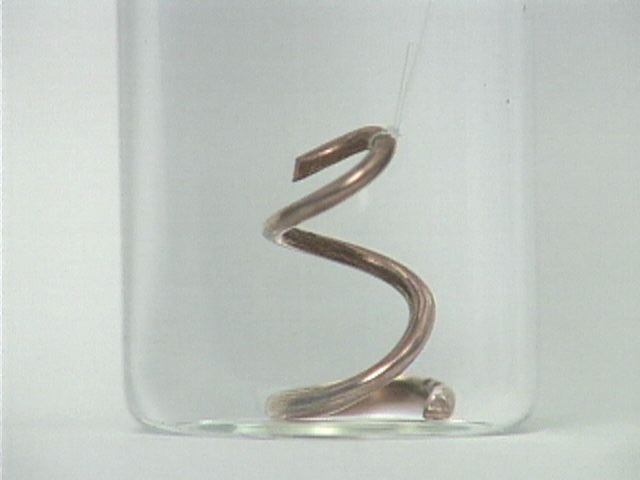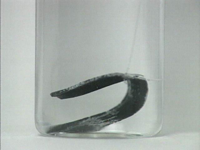 Time lapse shows the reaction of zinc metal with aqueous cadmium nitrate. Note the formation of cadmium crystals on the surface of the zinc.