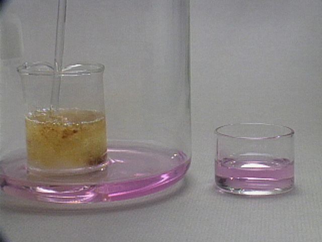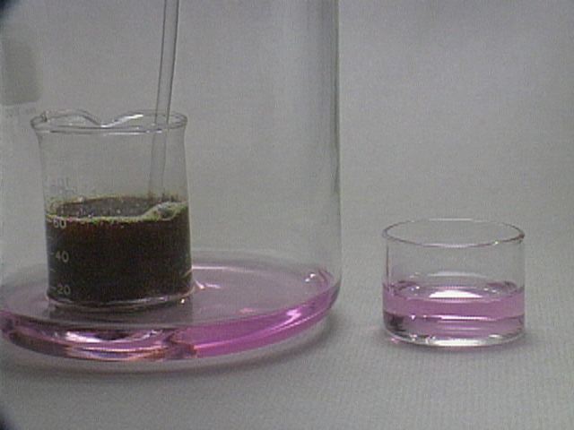Sulfuric acid also acts as an oxidizing agent, and is reduced to sulfur dioxide. The sulfur dioxide reduces dissolved purple permanganate to nearly colorless manganese(II).