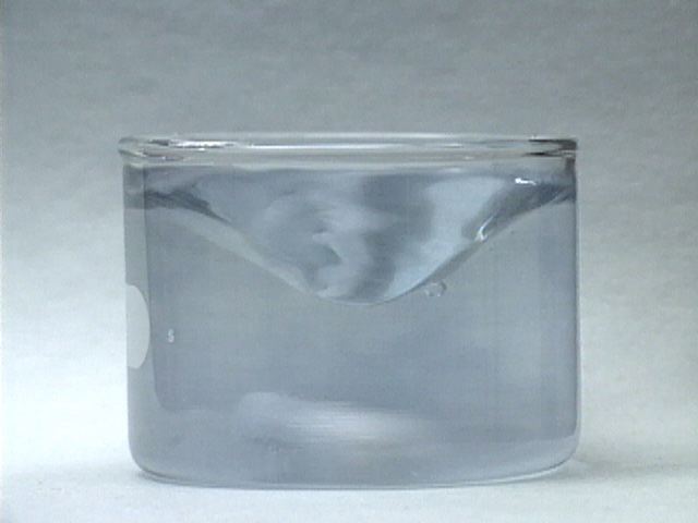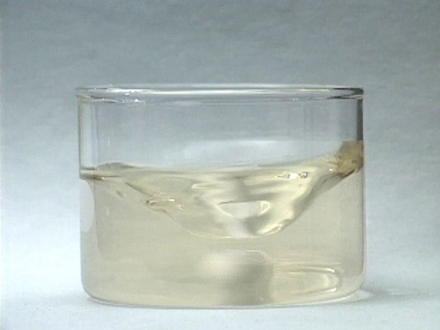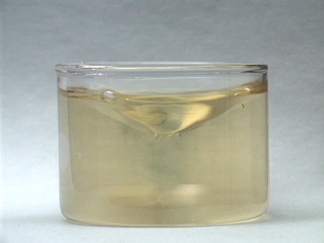 Oscillating Reaction: Briggs-Rauscher - With Stirring Still Images A solution of malonic acid, starch and manganese(II) catalyst is added to a solution of hydrogen peroxide, iodate, and sulfuric acid. A reaction involving many steps occurs. One step generates iodine, oxygen gas, and carbon dioxide gas. When the concentration of iodine gets large enough, triiodide is generated and forms a blue complex with starch. A second step uses up iodine, reversing the formation of the blue complex. As the iodine concentration oscillates, the color oscillates from colorless to amber to blue. You can get at large JPEG versions of the images by means of the following links. 0 1 2 3 4 5 6 7 8 Back to the topic