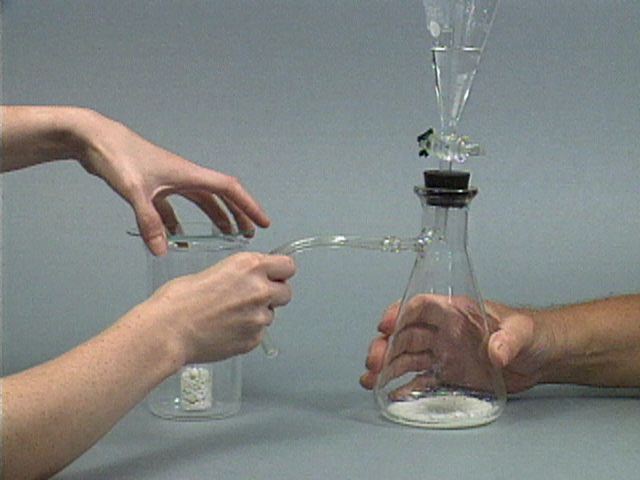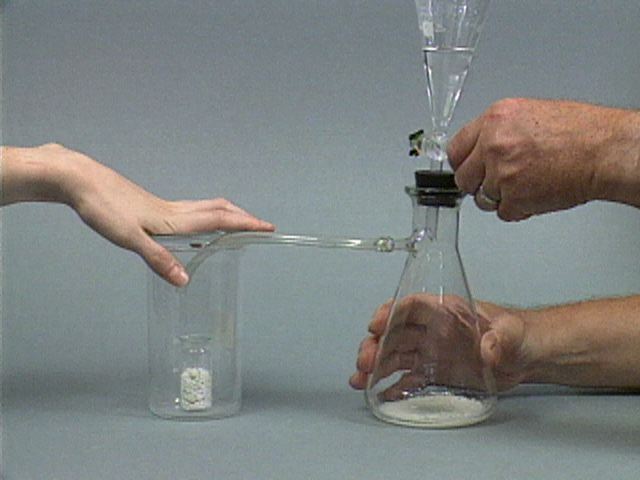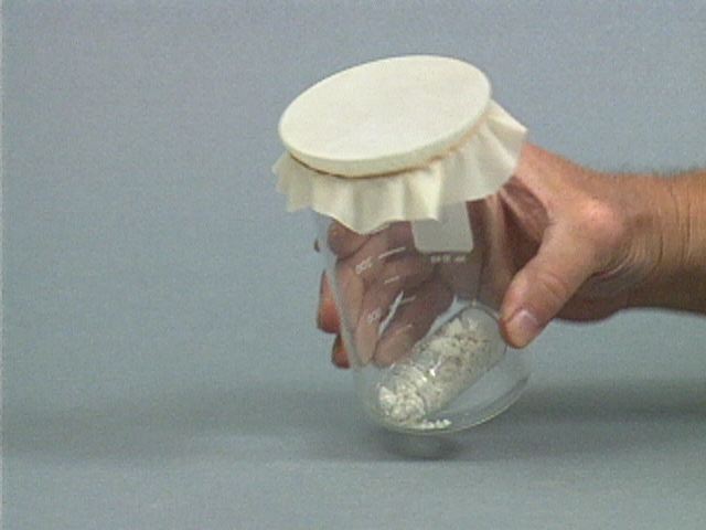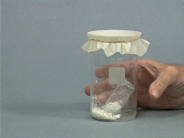 Soda Lime and Sulfur Dioxide Still Images A large beaker contains a covered vial of soda lime, which is a damp mixture of sodium hydroxide and calcium oxide. Sulfur dioxide gas is added to the beaker and the top of the beaker is sealed with a rubber dam. The vial is tipped over, so the soda lime can mix with the sulfur dioxide. The reaction of the calcium oxide with sulfur dioxide creates solid calcium sulfite, decreasing the number of gas particles and thus the pressure within the beaker, so the dam is pushed inward by atmospheric pressure. You can get at large JPEG versions of the images by means of the following links. 0 1 2 3 4 5 6 7 8 9 10 11 12 13 14 15 16 17 18 19 20 21 22 Back to the topic