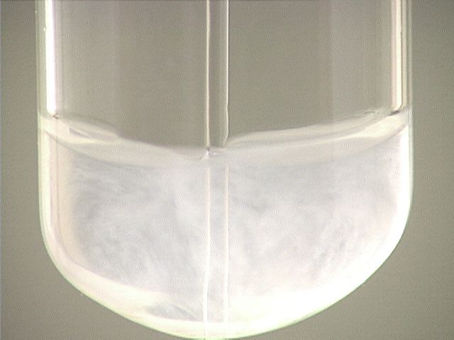 Here, ammonia (NH3) is added to cadmium nitrate (Cd(NO3)2). The result is a finely divided white precipitate.