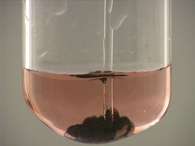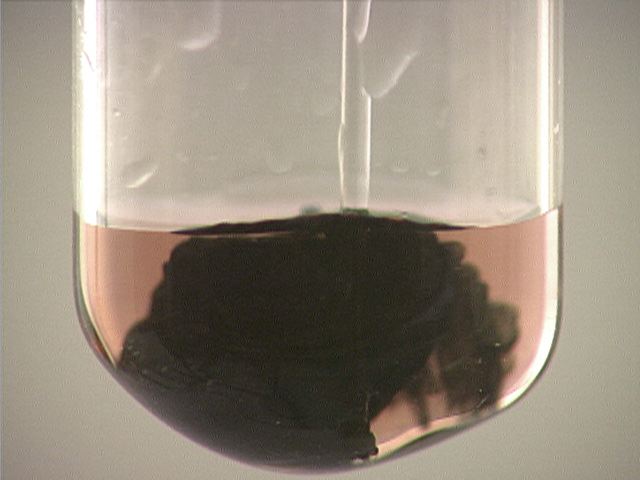 Here, sodium sulfide (Na2S) is added to cobalt(II) chloride (CoCl2). The result is a black precipitate.