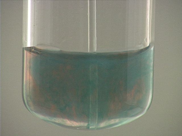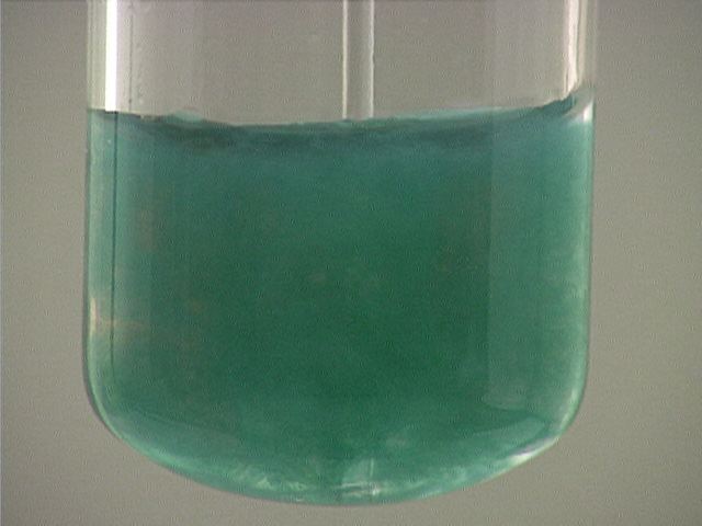 Here, ammonia (NH3) is added to cobalt(II) chloride (CoCl2). The result is a blue-green precipitate.