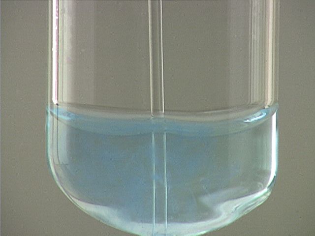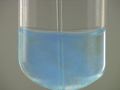 Here, sodium hydroxide (NaOH) is added to copper(II) nitrate (Cu(NO3)2). The result is a blue precipitate.