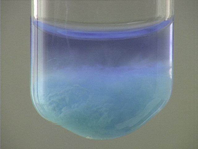 Here, ammonia (NH3) is added to copper(II) sulfate (CuSO4). The result is a pale blue precipitate, which is Cu(OH)2(s). The dark blue color is due to Cu(NH3)4 2+ .