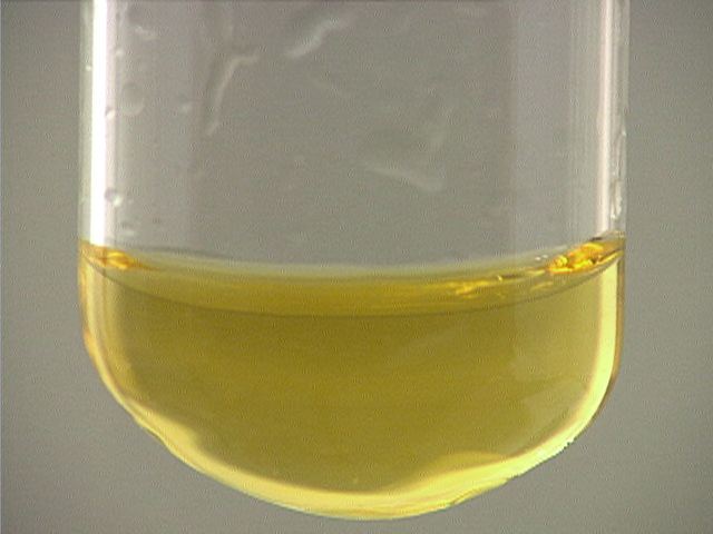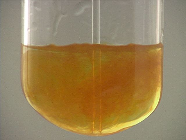 Here, sodium hydroxide (NaOH) is added to iron(III) ion (Fe3+). The result is an orange precipitate.