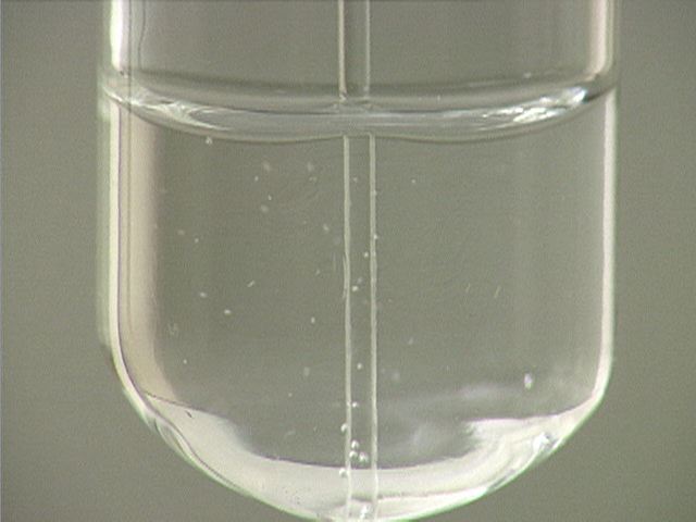 Here, sodium carbonate (Na2CO3) is added to hydrochloric acid (HCl). The result is a flurry of small bubbles.