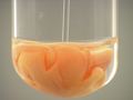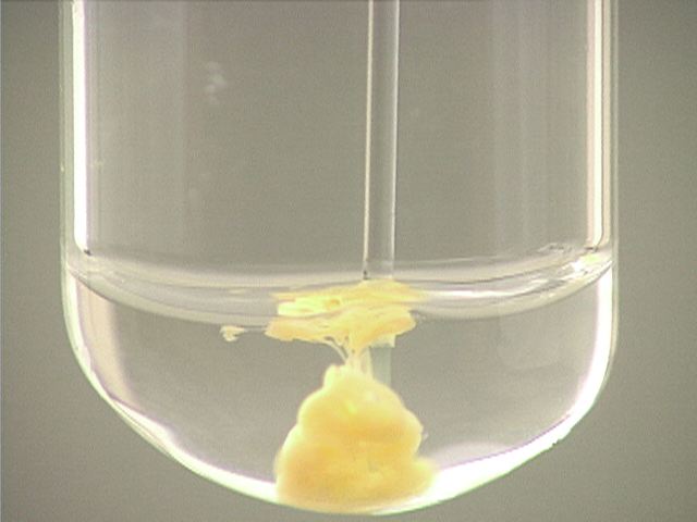 Here, sodium iodide (NaI) is added to mercury(II) ion (Hg2+). The result is an orange precipitate.