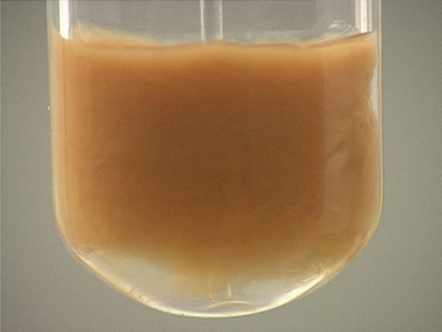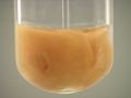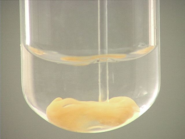 Here, sodium carbonate (Na2CO3) is added to mercury(I) nitrate (Hg2(NO3)2). The result is an orange precipitate.