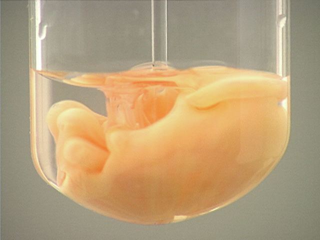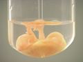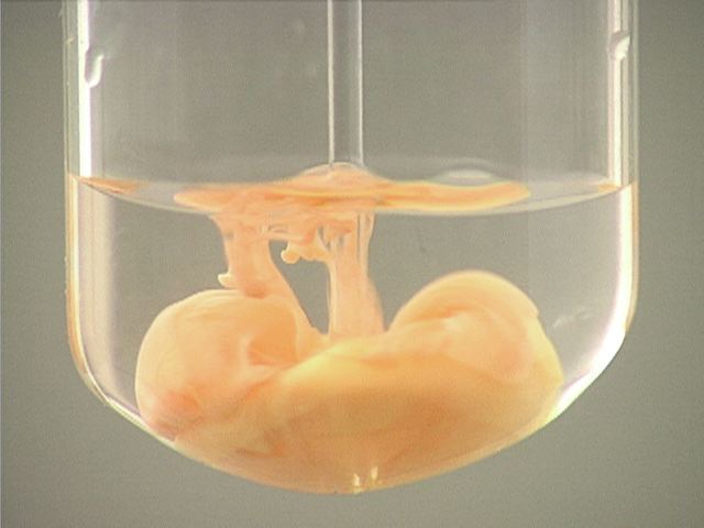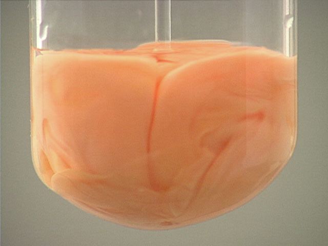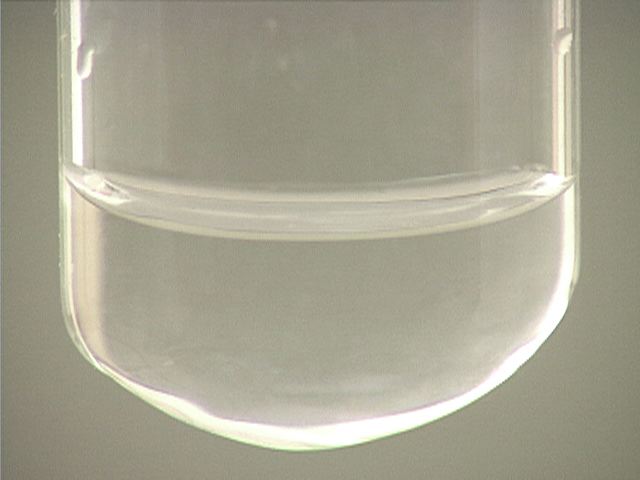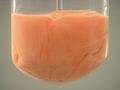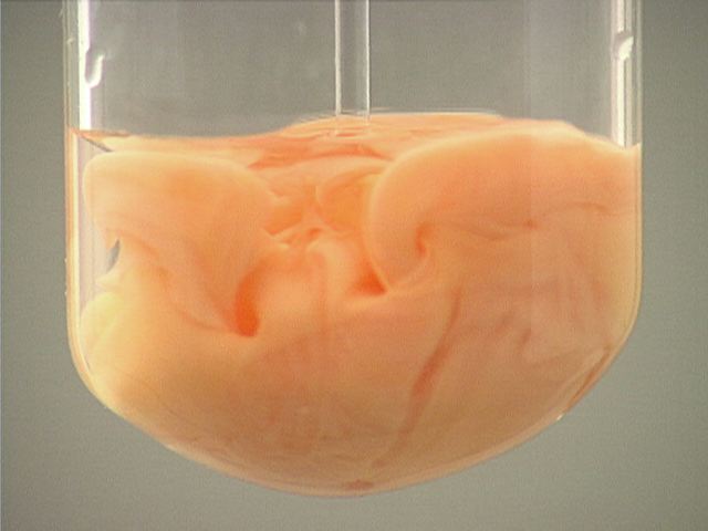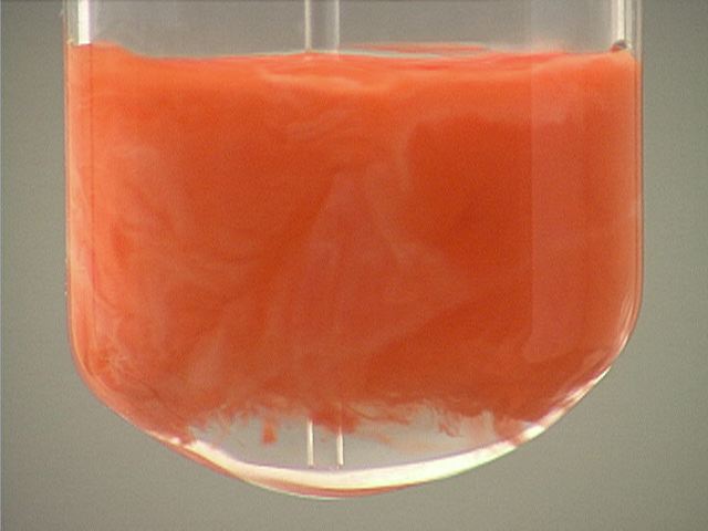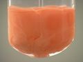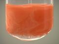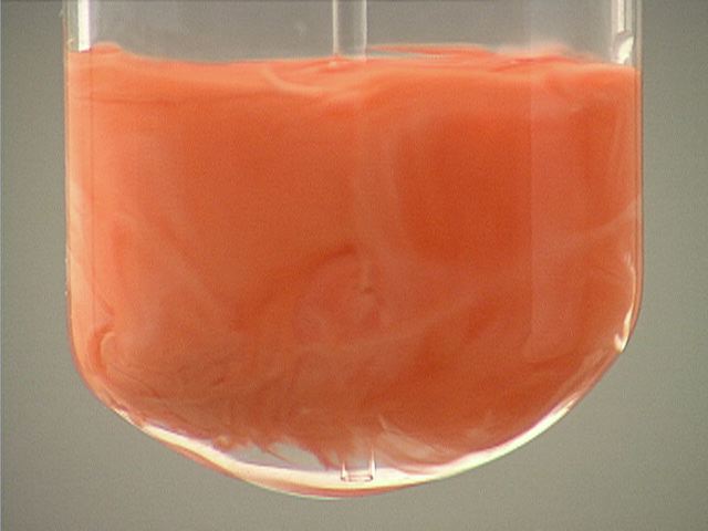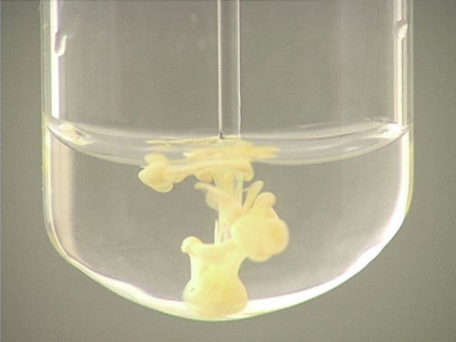 Here, sodium iodide (NaI) is added to mercury(I) nitrate (Hg2(NO3)2). The result is an orange precipitate.