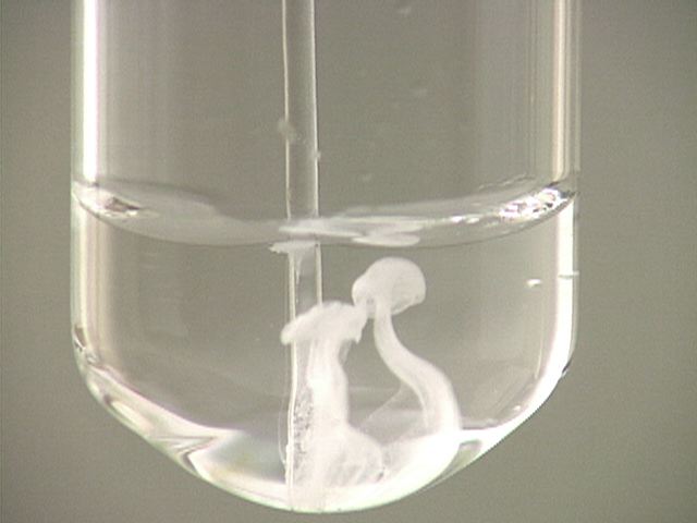 Here, sodium sulfate (Na2SO4) is added to lead(II) nitrate (Pb(NO3)2). The result is a white precipitate.
